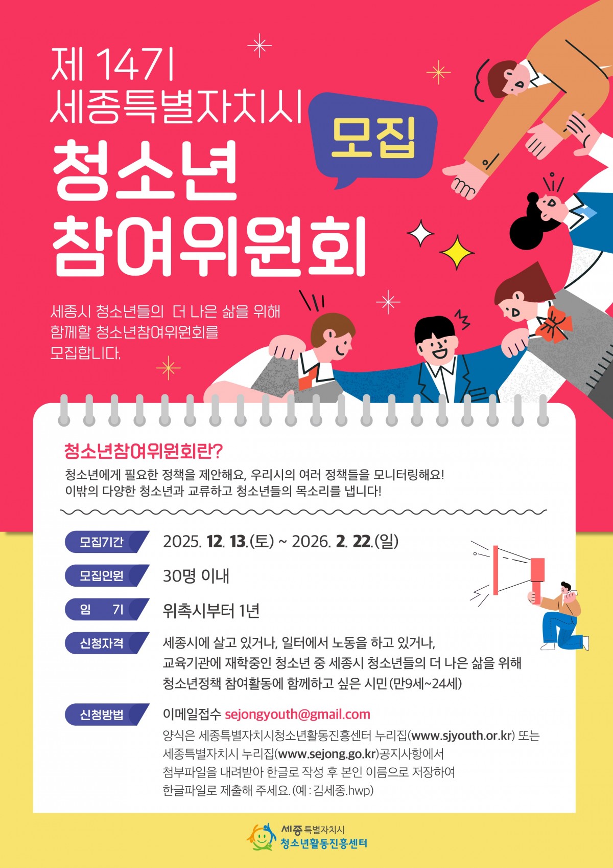 [26-활동-01호] 2026년 제14기 세종특별자치시 청소년참여위원회 모집 재공고(연장)