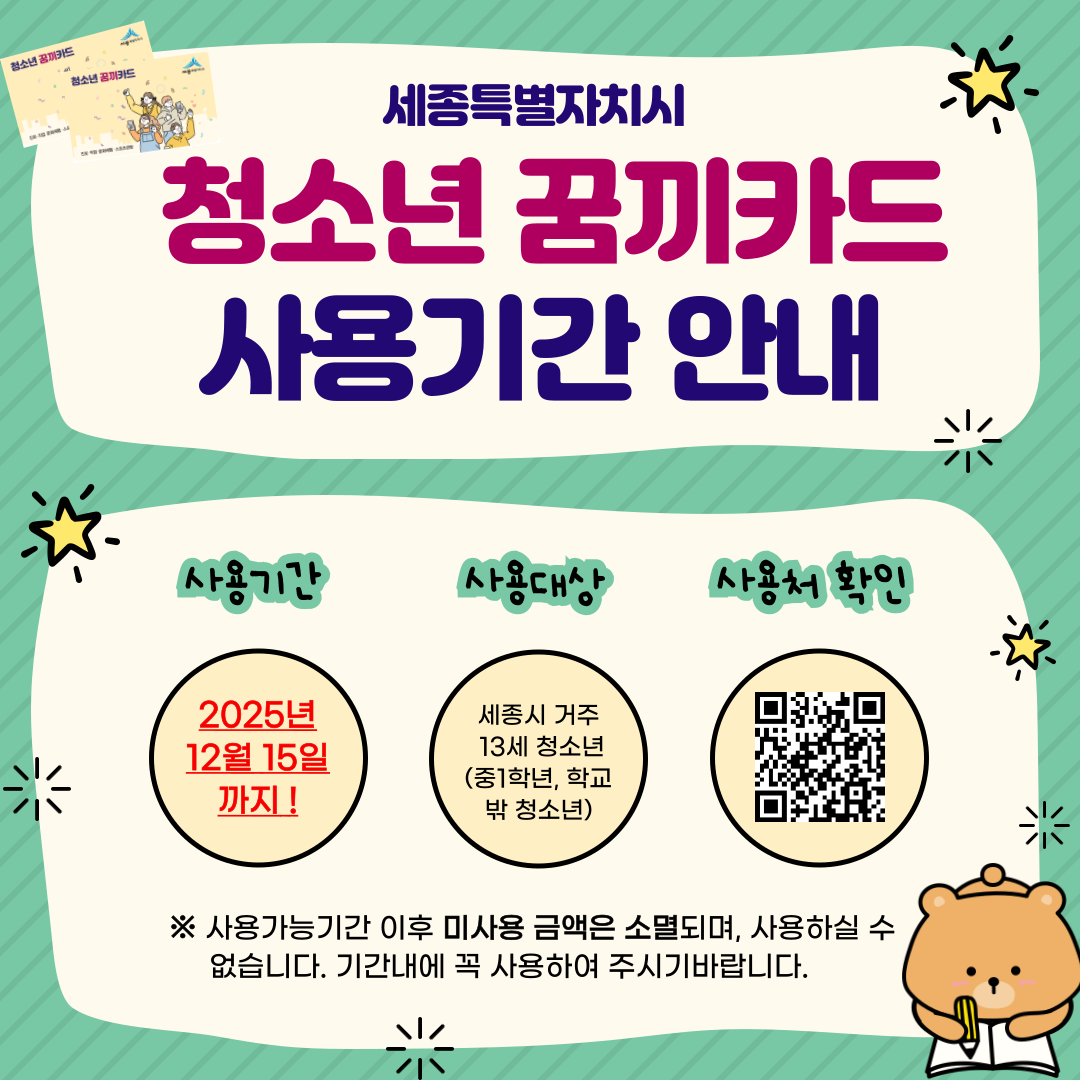 [홍보] 2025년 청소년 꿈끼카드 사용기간 안내